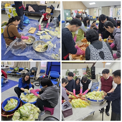 사랑의 김장김치 올해도 교회는 어김없이 교우님들의 수고와 새날 청년들의 자발적 헌신을 통해 다 같이 모여 공동작업으로 김장김치를 만들었습니다 남녀(男女) 구분을 하지 아니하고 나이…