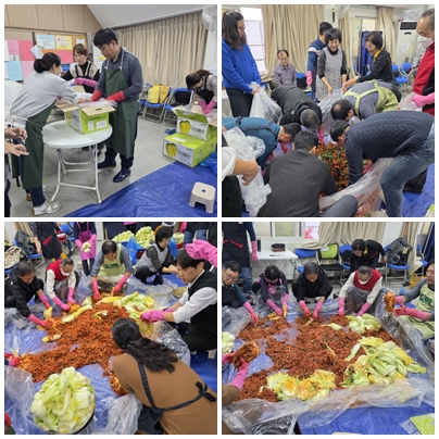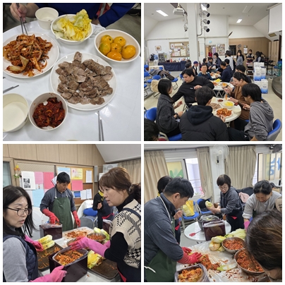 다 같이 모여 공동작업으로 김장김치를 만들었습니다