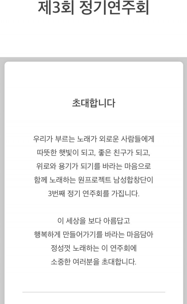 연주회 당일 7시까지 오시면 조촐한 저녁식사로